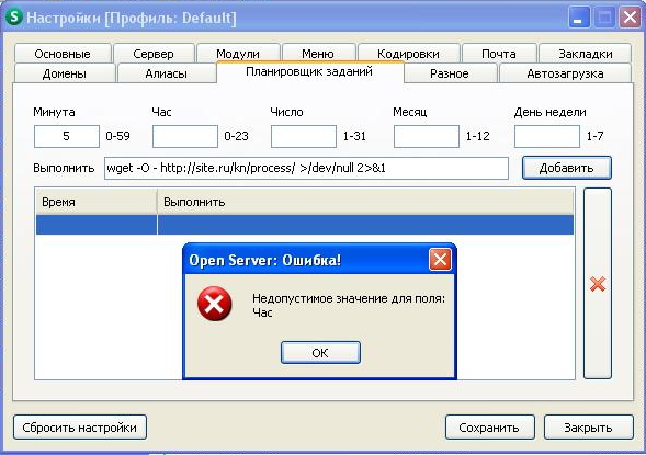 Подскажите, как настроить обращение к вебстранице сайта, расположенного на Open server каждые пять минут в течении нескольких суток?