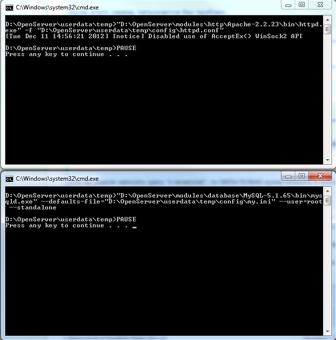 121211 15:03:09 [Note] Plugin 'FEDERATED' is disabled. 121211 15:03:09 InnoDB: Initializing buffer pool, size = 10.0M 121211 15:03:09 InnoDB: Completed initialization of buffer pool 121211 15:03:10 InnoDB: Started; log sequence number 2 2929244293 121211 15:03:10 [Note] Event Scheduler: Loaded 0 events 121211 15:03:10 [Note] D:\OpenServer\modules\database\MySQL-5.1.65\bin\mysqld.exe: ready for connections. Version: '5.1.65-community-log' socket: '' port: 3306 MySQL Community Server (GPL)