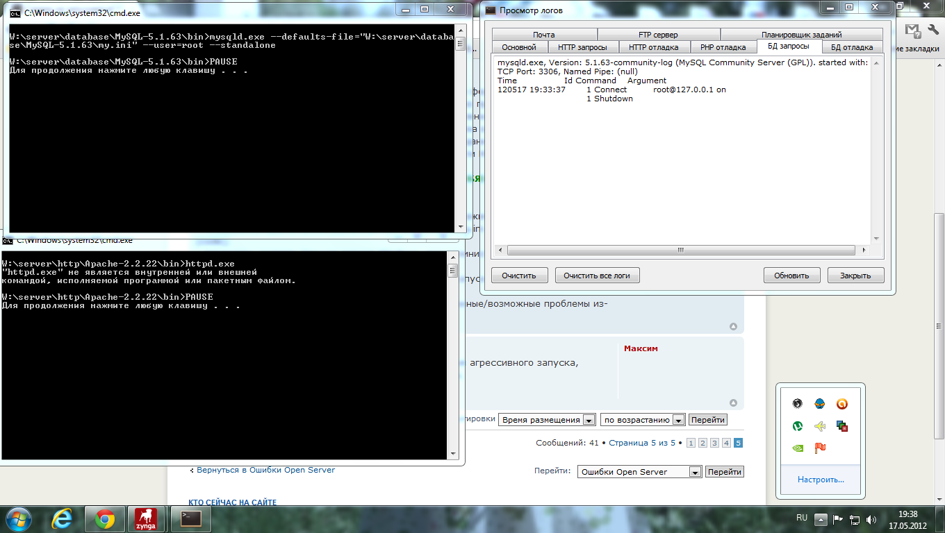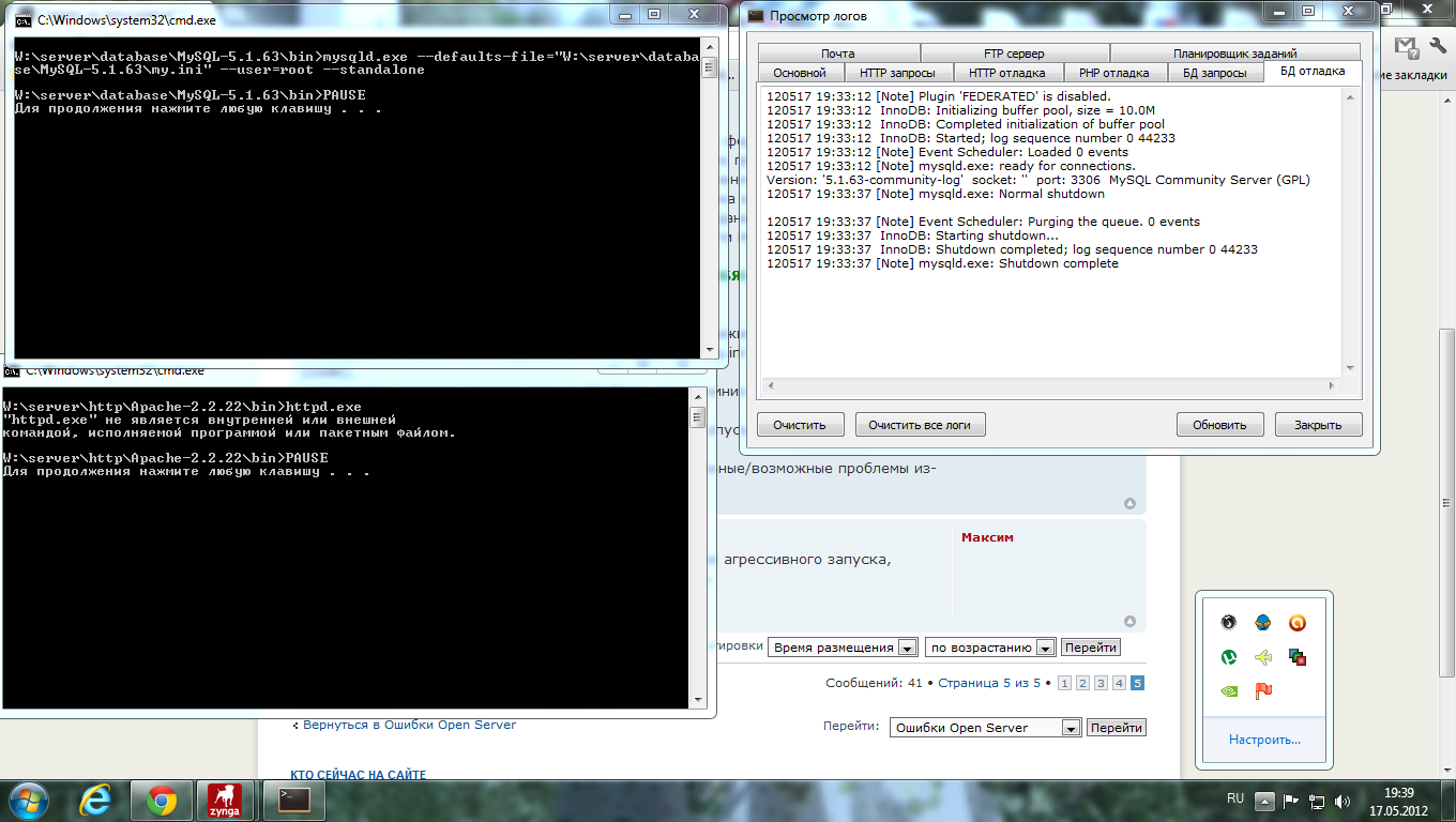 C:\Webserver\server\database\MySQL-5.1.63\bin\mysqld.exe, Version: 5.1.63-community-log (MySQL Community Server (GPL)). started with: TCP Port: 3306, Named Pipe: (null) Time Id Command ArgumentБД отладка