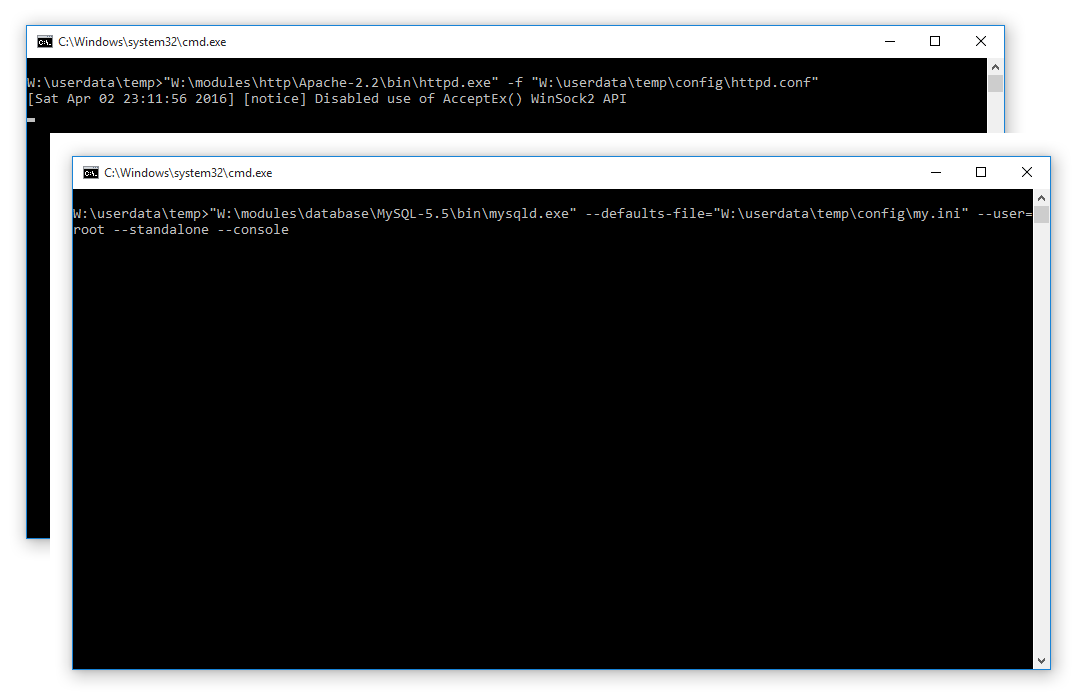 2016-04-02 23:11:56 -------------------------------------------- 2016-04-02 23:11:56 Начало процедуры запуска сервера 2016-04-02 23:11:56 Создание виртуального диска 2016-04-02 23:11:56 Обновление Hosts файла 2016-04-02 23:11:56 Обновление конфигурации MySQL-5.5 2016-04-02 23:11:56 Обновление конфигурации Sendmail 2016-04-02 23:11:56 Обновление конфигурации PHP-5.3 2016-04-02 23:11:56 Обновление конфигурации PHPMyAdmin 2016-04-02 23:11:56 Обновление конфигурации Apache-2.2 2016-04-02 23:11:56 Запуск MySQL-5.5 2016-04-02 23:11:56 Запуск Apache-2.2 2016-04-02 23:11:56 Проверка состояния сервера 2016-04-02 23:12:08 Не удалось запустить MySQL-5.5 2016-04-02 23:12:08 Сбой запуска! 2016-04-02 23:12:08 -------------------------------------------- 2016-04-02 23:12:08 Начало процедуры остановки сервера 2016-04-02 23:12:08 Остановка системных модулей 2016-04-02 23:12:08 Отключение виртуального диска 2016-04-02 23:12:08 Веб-сервер успешно остановлен!Apache запросы: