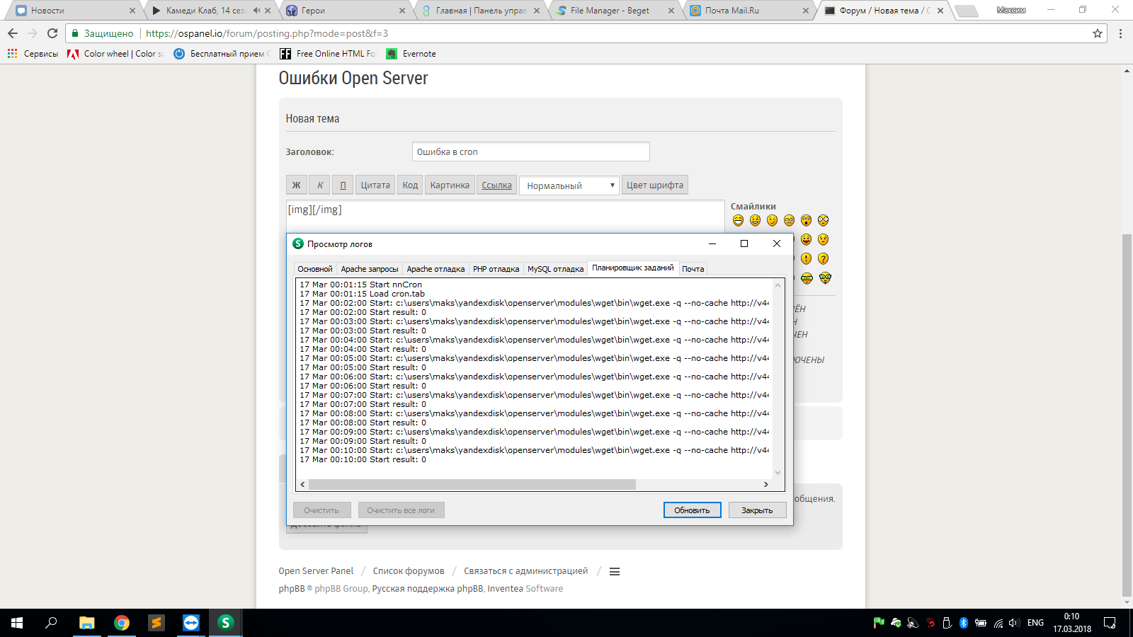 Ошибки Open Server