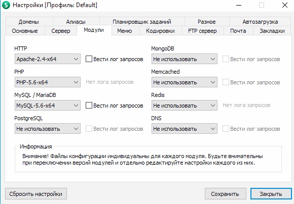 Использую OpenServer актуальной версии 5.2.8, Windows 10 x64, для запуска включаю Open Server x64.exe, все модули (прикрепил скриншоты) также x64.