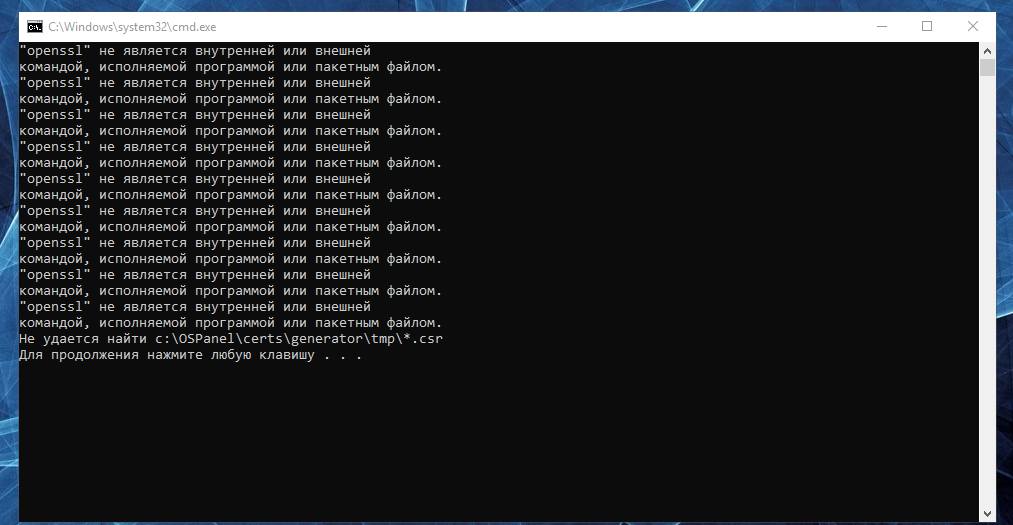 Устанавливал сертификаты (rootCA.crt, server.crt) из папки "с:\OSPanel\userdata\config\cert_files\" в "Доверенные корневые центры сертификации",