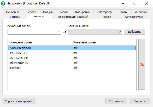 Но вопреки этому на старой версии адрес вида blabla.ark34region.ru срабатывал... Настройки старой приложены.