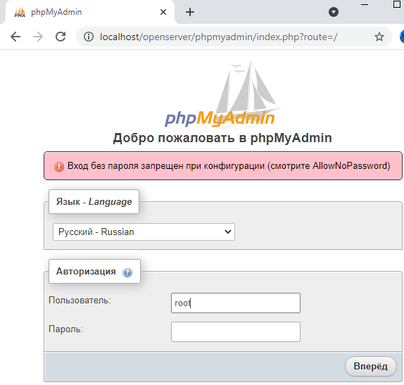 Установил ОС. Следуя инструкции, захожу в ПМА под root с пустым паролем - не пускает.
