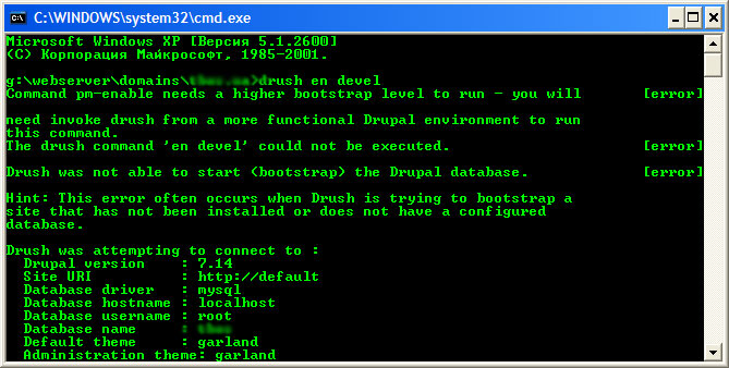 Пробую настроить drush (консоль для Drupal), сама оболочка работает, а вот с друпалом выдает кучу ошибок.