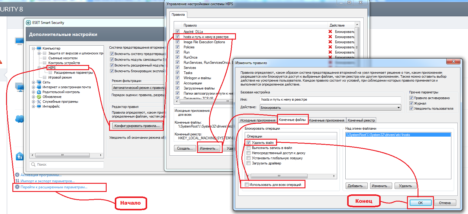 (я не стал удалять файл hosts, а просто в настройках оставил проверку на операцию "удаления" вместо "использовать для всех операций". Однако вы можете его вообще удалить, если хотите. Я то оставил чтобы не забыть что оно там было в пути к файлу написано, а то вдруг включать придется)