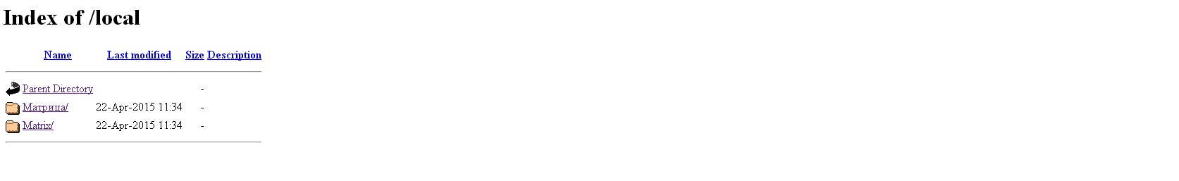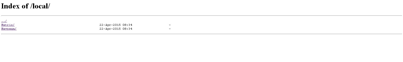 Если в качестве сервера выбираю nginx 1.7, то в папку на кириллице Матрица войти невозможно, выдается ошибка 500 Internal Server Error