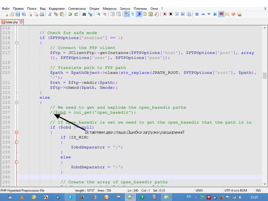 Перенёс сайт с живого хостинга на OpenServer (для экспериментов с обновлением). Сайт Joomla в живую работает всё пучком, а на OS он на попытку установить какой либо компонент в Joomla всё время выдаёт ошибку:
