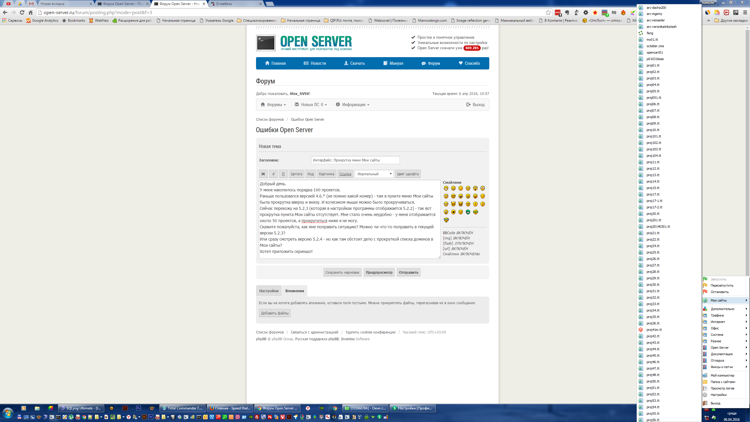 Сейчас перехожу на 5.2.3 (которая в настройках программы отображается 5.2.2) - так вот прокрутка пункта Мои сайты отсутствует. Мне стало очень неудобно - у меня отображается около 50 проектов, а прокрутиться ниже я не могу.