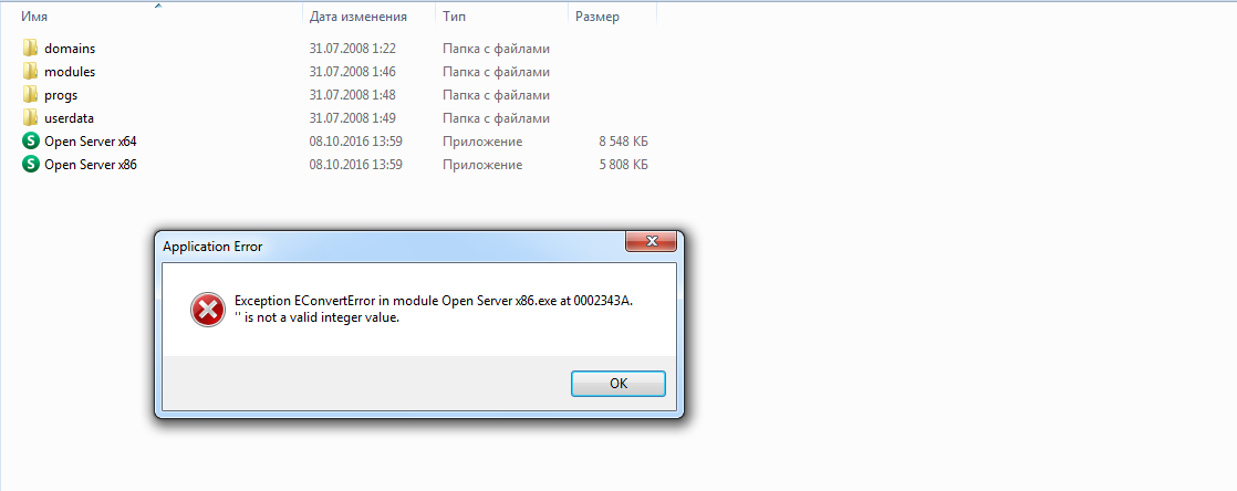 P.S. пробовал убрать VMware из автозагрузки и перегрузить комп. И потом запустить Open Server. Не помогло.