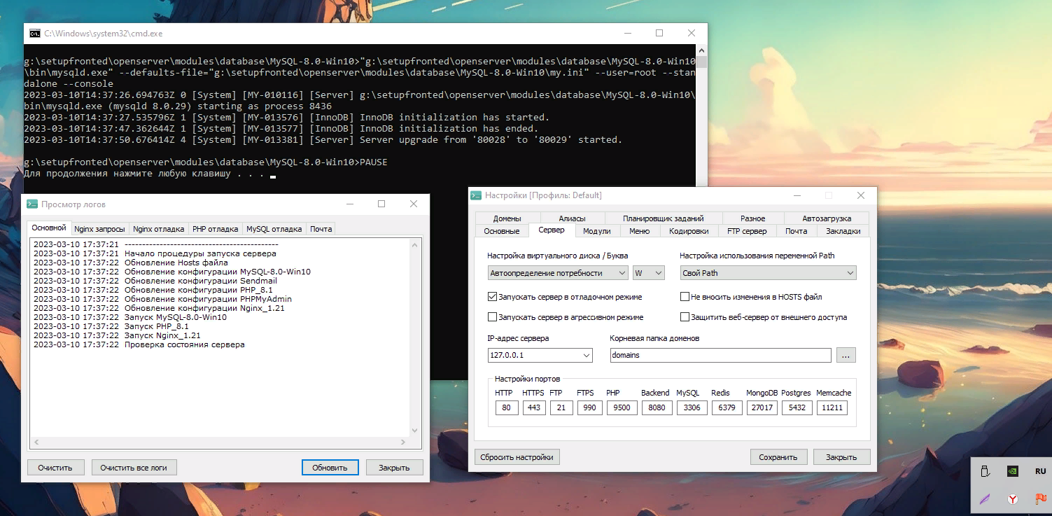 Та же проблема вылезла на одном компе, решить не могу. Установка более старых сборок ничего не меняет. Если там стоит PHP по умолчанию 7.1-7.2 то ошибок нет, если ставить 7.4 то начинают такие лезть при его перезагрузке. Как можно исправить ? Так понимаю, что проблема как-то связана microsoft visual C ++. Удалял, переустанавливал итд, ничего не помогло.tamerfors писал(а): ↑18 мар 2023, 11:21С подобным столкнулся тоже, что только не делал. В итоге вернулся - установил предыдущую версию панели 5.4.2 в ней нет этой болезни.lekskokorin писал(а): ↑02 дек 2022, 22:42 После установки последней версии OS при запуске сервера выдает 3 ошибки:
