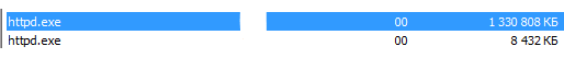 Но буквально уже через сутки один из процессов httpd.exe начинает поедать от 500 Мб до 1 Гб