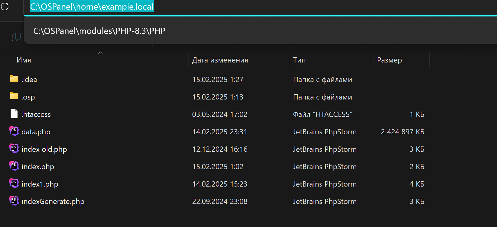 Переустановил os panel 6 чтобы добавить компонент. Теперь при запуске index.php вылазит предупреждение. Warning: include(): Failed opening 'data.php' for inclusion (include_path='.;C:/OSPanel/data/PHP-8.3-FCGI/default/composer') in C:\OSPanel\home\example.local\index.php on line 7