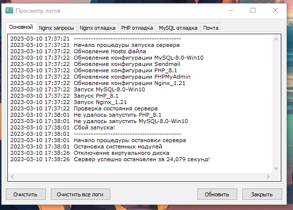 , так же в логах ничего полезного не оказывается