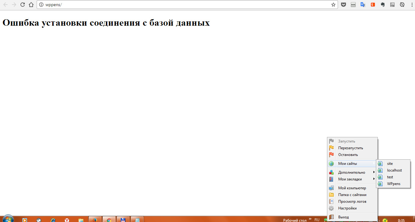 -- При входе по пути: OpenServer--Мои сайты--wppens ругается "Ошибка установки соединения с базой данных" ( см. вбожение 2)