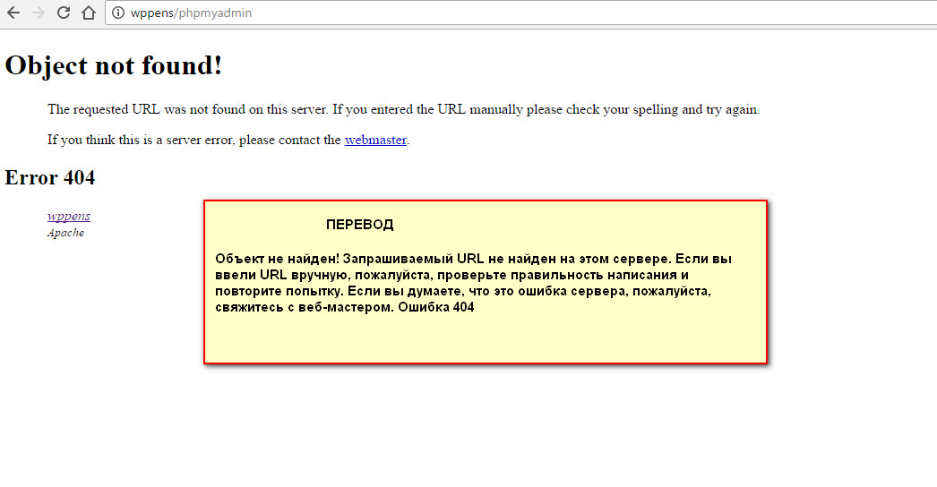 --При наборе в адресной строке : wppens/phpmyadmin предлагает обратиться к вебмастеру (см. вложение 3 )