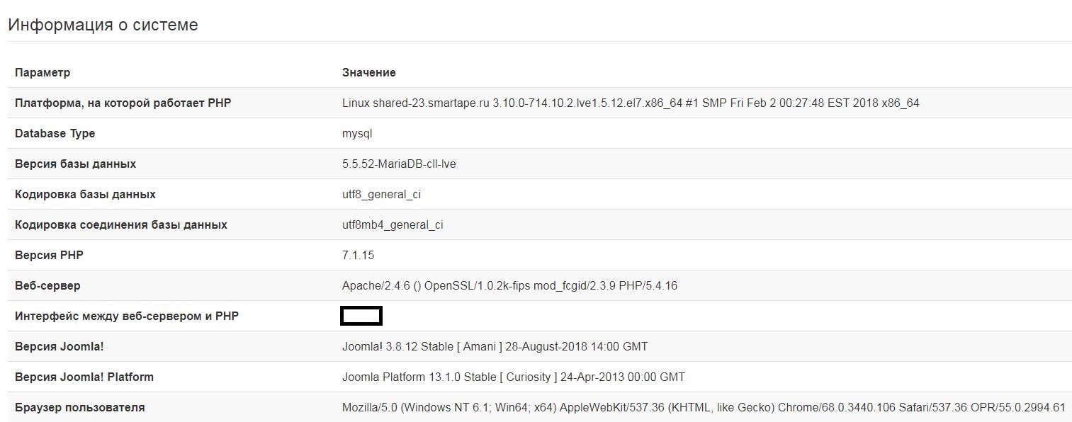 А в "информации о системе" в админ панели сайта, уже другие данные!