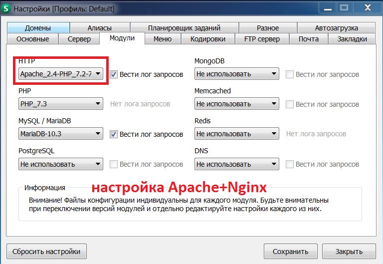 Если выставляю Apache+Nginx-1.17 то все работает! Но показывает, что работает на Apache.