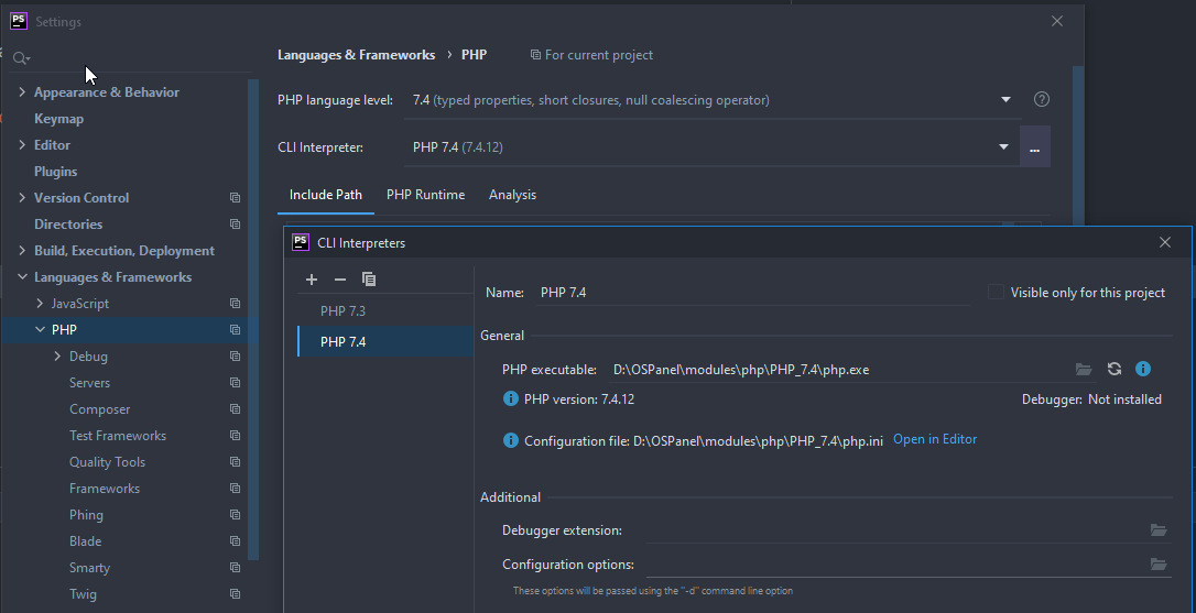Как настроить OpenServer для работы с PHPStorm?