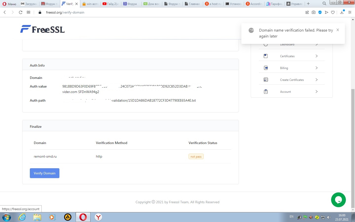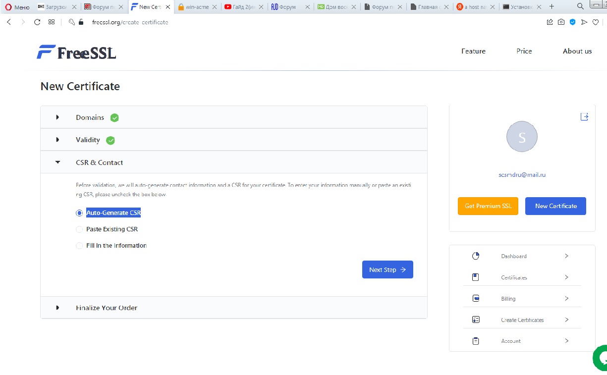 Статический IP имеется, всё настроил, доменное имя прикрутил, заходит через доменку, но сколько уже перепробовал получить и установить сертификаты SSL ничего не получалось, Прочитал кучу информации на форуме, на других источниках, пересмотрел тьму роликов, никак не получилось прикрутить SSL.
