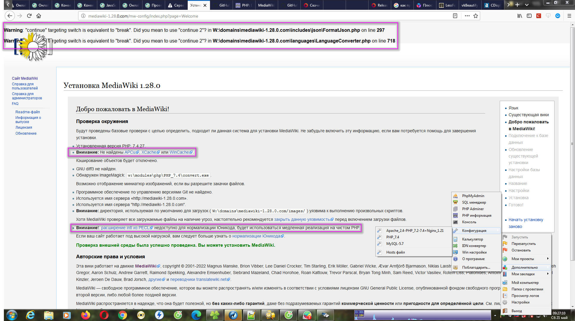 На старых версиях теперь выдает предупреждение. Но новую версию движка не поставить через отсутствие элемента PHP расширения intl из PECL