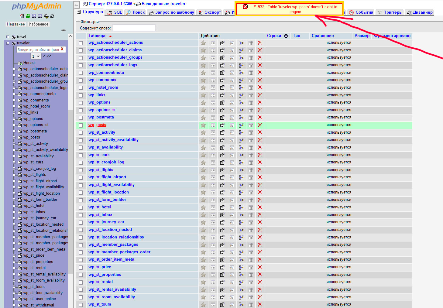 Перераспаковал Open Server в эту же папку где и был, так как ни сайт не запускался, ни в PhpMyAdmin не мог зайти после игр с настройками модулей. После распаковки в PhpMyAdmin, базы как бы на месте, но при нажатии на любую строку пишет ошибку #1932 (см. скрин ). Это конец базам, или можно спасти ситуацию? Помогите!!